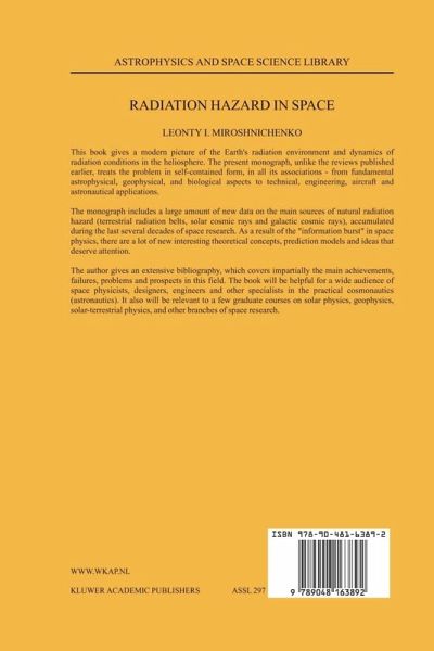 The mono graph contains 8 chapters, and their contents cover all principal aspects of the problem: 1. Introduction and brief his tory ofthe radiation problem and background information ofradiation hazard in the near-Earth and interplanetary space. 2. General description of radiation conditions and main sources of charged partic1es in the Earth's environment and interplanetary space, effects of space environment on spacecraft. 3. Basic information about physical conditions in space and main sources of charged particles in the Earth's environment and interplanetary space, in the context of "Space W eather" monitoring and prediction. 4. Trapped radiation belts of the Earth (ERB): theory of their origin, spatial and temporal dynamics, and experimental and statistical models. 5. Galactic cosmic rays (GCR): variations of energetic, temporal and spatial characteristics, long-term modulation, and anomalous cosmic ray (ACR) component, modeling oftheir dynamics. 6. Production of energetic particles (SEPs) at/ne ar the Sun: available databases, acceleration, propagation, and prediction of individual SEP event, statistical models of solar cosmic rays (SCR). 7. Existing empirical techniques of estimating, prediction and modeling of radiation hazard, methodical approaches and constraints, some questions of changes in the Earth's radiation environment due to changes of the solar activity level. 8. Unresolved problems of radiation hazard prediction and spacecraft protection, radiation experiments on board the spacecraft, estimating of radiation conditions during interplanetary missions. Space does not allow us to explain every time the solar-terrestrial and radiation physics nomencIature used in current English-language literature.