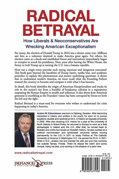For many, the election of Donald Trump in 2016 was a dream come true. Millions saw him as a redeemer destined to make America great again. For others, his election came as a shock and established forces and institutions immediately began to conspire to wreck his presidency. Now, years after leaving the White House, the frenzy to lock Trump up is turning the U.S. into a banana republic. How can a single event provoke such strong reactions and dangerous outcomes? This book goes beyond the banalities of Trump haters, media bias, and academic prejudice to explain this phenomenon and answer underlying questions. It shows that to understand modern America, we must recall what the Founding Fathers wanted the country to become and compare it with what it has become. In detail, this book identifies the origin of American Exceptionalism and tracks its role in the nation's rise from a handful of breakaway colonies to a superpower surpassing the Roman Empire in wealth and influence. It also shows how America's greatness is crumbling as the Founders' vision has been corrupted by forces on both the left and the right. Radical Betrayal is a must-read for everyone who wishes to understand the crisis happening in today's America.