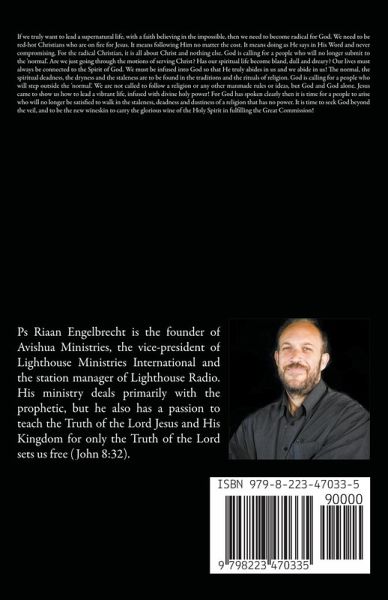 If we truly want to lead a supernatural life, with a faith believing in the impossible, then we need to become radical for God. We need to be red-hot Christians who are on fire for Jesus. It means following Him no matter the cost. It means doing as He says in His Word and never compromising. For the radical Christian, it is all about Christ and nothing else. God is calling for a people who will no longer submit to the 'normal'. Are we just going through the motions of serving Christ? Has our spiritual life become bland, dull and dreary? Our lives must always be connected to the Spirit of God. We must be infused into God so that He truly abides in us and we abide in Him! The normal, the spiritual deadness, the dryness and the staleness are to be found in the traditions and the rituals of religion. God is calling for a people who will step outside the 'normal'. We are not called to follow a religion or any other manmade rules or ideas, but God and God alone. Jesus came to show us how to lead a vibrant life, infused with divine holy power! For God has spoken clearly, then it is time for a people to arise who will no longer be satisfied to walk in the staleness, deadness and dustiness of a religion that has no power. It is time to seek God beyond the veil, and to be the new wineskin to carry the glorious wine of the Holy Spirit in fulfilling the Great Commission!