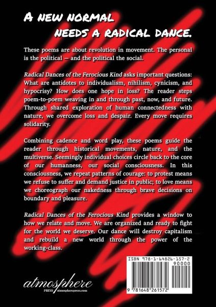 A new normal needs a radical dance. These poems are about revolution in movement. The personal is the political and the political the social. Radical Dances of the Ferocious Kind asks important questions: What are antidotes to individualism, nihilism, cynicism, and hypocrisy? How does one hope in loss? The reader steps poem-to-poem weaving in and through past, now, and future. Through shared exploration of human connectedness with nature, we overcome loss and despair. Every move requires solidarity. Combining cadence and word play, these poems guide the reader through historical movements, nature, and the multiverse. Seemingly individual choices circle back to the core of our humanness, our social consciousness. In this consciousness, we repeat patterns of courage: to protest means we refuse to suffer and demand justice in public; to love means we choreograph our nakedness through brave decisions on boundary and pleasure. Radical Dances of the Ferocious Kind provides a window to how we relate and move. We are organized and ready to fight for the world we deserve. Our dance will destroy and rebuild through the power of the working class.
