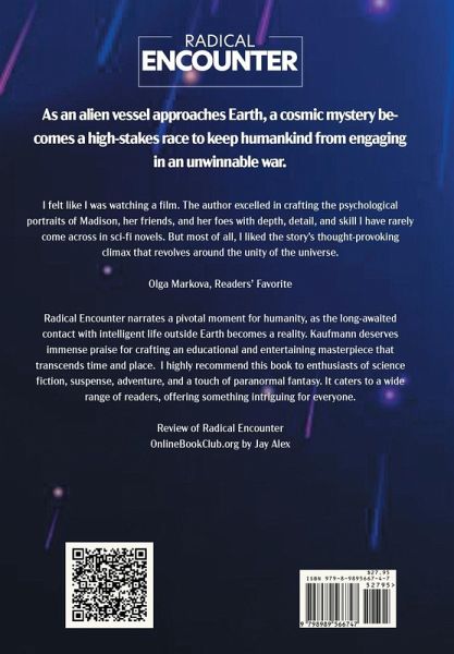 Her drawings of an alien spacecraft have unwittingly laid bare the greatest government cover-up of all time. She's experimental, transgressive, and vulnerable. Madison never turns away from love, takes risks she shouldn't, and hears a Voice that comes out of nowhere. She would kill to protect the woman she loves and the man who loves her. Her child is everything. No one will take her away without a fight. She cries, she breaks down, she's angry, she's an artistic genius. Madison Ayana is dragged into a cosmic mystery that will change the future of humanity. Revealing her source will shatter her life. Even under interrogation, she will not talk about the Voice she hears. She would be labeled crazy. Fearful and untrusting, her only hope is the lead agent who risks her career and her heart to become an unlikely ally. Madison is the key to understanding why an alien race would traverse the Milky Way to visit humanity. When a hacker group floods the internet with her alien vessel sketches, the two become tangled in politics and public hysteria. An FBI investigation lands them on the most wanted list. Branded as spies from outer space by conspiracists, and pursued by authorities, their intimate bond shapes their future as they struggle to survive the lies that spread across social media. Their only hope is to find the one scientist who believes her visions are real and will change the course of human history. What Madison sees is far greater than an alien spacecraft heading toward Earth. As the stakes escalate, she must confront her humanity, her ability to love, and her willingness to sacrifice. When the spherical object hedges closer to our planet, the fate of humanity hangs in the balance. Madison holds the brush that could write the Earth's future. These highly advanced space travelers have a very personal reason for coming.