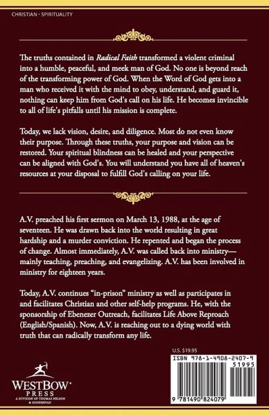 The truths contained in Radical Faith transformed a violent criminal into a humble, peaceful, and meek man of God. No one is beyond reach of the transforming power of God. When the Word of God gets into a man who received it with the mind to obey, understand, and guard it, nothing can keep him from God's call on his life. He becomes invincible to all of life's pitfalls until his mission is complete. Today, we lack vision, desire, and diligence. Most do not even know their purpose. Through these truths, your purpose and vision can be restored. Your spiritual blindness can be healed and your perspective can be aligned with God's. You will understand you have all of heaven's resources at your disposal to fulfill God's calling on your life.