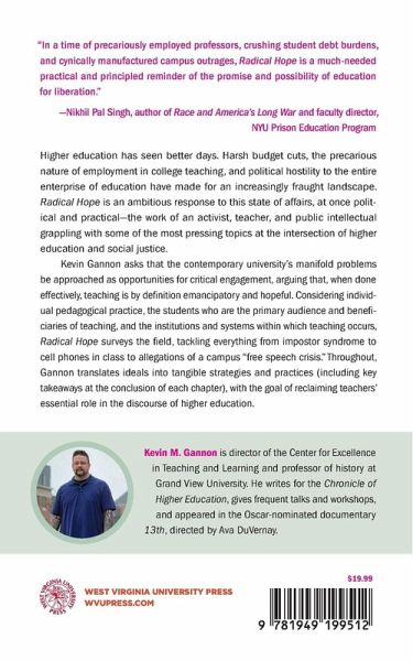 Higher education has seen better days. Harsh budget cuts, the precarious nature of employment in college teaching, and political hostility to the entire enterprise of education have made for an increasingly fraught landscape. Radical Hope is an ambitious response to this state of affairs, at once political and practical--the work of an activist, teacher, and public intellectual grappling with some of the most pressing topics at the intersection of higher education and social justice. Kevin Gannon asks that the contemporary university's manifold problems be approached as opportunities for critical engagement, arguing that, when done effectively, teaching is by definition emancipatory and hopeful. Considering individual pedagogical practice, the students who are the primary audience and beneficiaries of teaching, and the institutions and systems within which teaching occurs, Radical Hope surveys the field, tackling everything from impostor syndrome to cell phones in class to allegations of a campus "free speech crisis." Throughout, Gannon translates ideals into tangible strategies and practices (including key takeaways at the conclusion of each chapter), with the goal of reclaiming teachers' essential role in the discourse of higher education.
