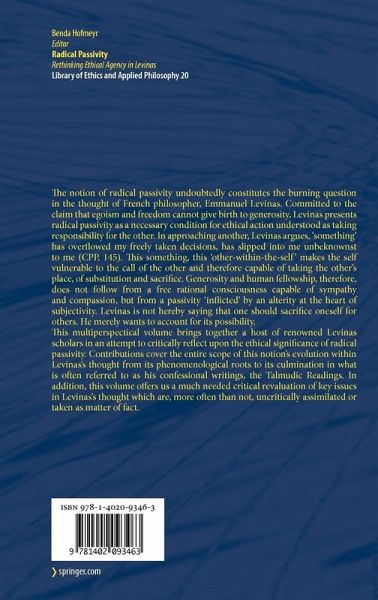 Levinas's ethical metaphysics is essentially a meditation on what makes ethical agency possible - that which enables us to act in the interest of another, to put the well-being of another before our own. This line of questioning found its inception in and drew its inspiration from the mass atrocities that occurred during the Second World War. The Holocaust , like the Cambodian genocide, or those in Rwanda and Srebrenica, exemplifies what have come to be known as the 'never again' situations. After these events, we looked back each time, with varying degrees of incomprehension, horror, anger and shame, asking ourselves how we could possibly have let it all happen again. And yet, atrocity crimes are still rampant. After Rwanda (1994) and Bosnia-Herzegovina (1992-1995), came Kosovo (1999) and Darfur (2003). In our present-day world , hate crimes motivated by racial, sexual, or other prejudice, and mass hate such as genocide and terror, are on the rise (think, for example, of Burma, Zimbabwe, Sri Lanka and North Korea). A critical revaluation of the conditions of possibility of ethical agency is therefore more necessary than ever. This volume is committed to the possibility of 'never again'. It is dedicated to all the victims - living and dead - of what Levinas calls the 'sober, Cain-like coldness' at the root of all crime against humanity , as much as every singular crime against another human being .