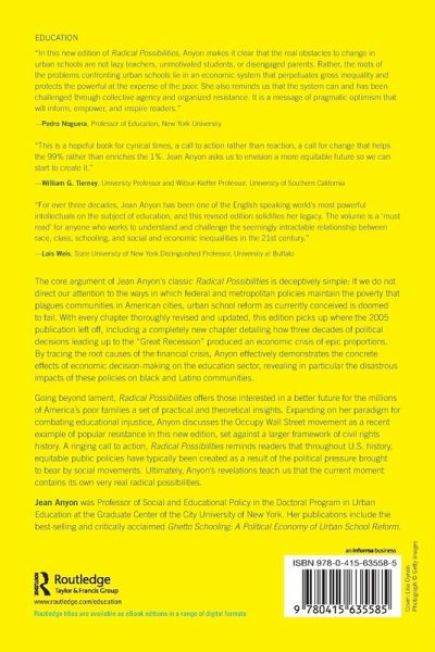 The core argument of Jean Anyon's classic Radical Possibilities is deceptively simple: if we do not direct our attention to the ways in which federal and metropolitan policies maintain the poverty that plagues communities in American cities, urban school reform as currently conceived is doomed to fail. With every chapter thoroughly revised and updated, this edition picks up where the 2005 publication left off, including a completely new chapter detailing how three decades of political decisions leading up to the "Great Recession" produced an economic crisis of epic proportions. By tracing the root causes of the financial crisis, Anyon effectively demonstrates the concrete effects of economic decision-making on the education sector, revealing in particular the disastrous impacts of these policies on black and Latino communities. Going beyond lament, Radical Possibilities offers those interested in a better future for the millions of America's poor families a set of practical and theoretical insights. Expanding on her paradigm for combating educational injustice, Anyon discusses the Occupy Wall Street movement as a recent example of popular resistance in this new edition, set against a larger framework of civil rights history. A ringing call to action, Radical Possibilities reminds readers that throughout U.S. history, equitable public policies have typically been created as a result of the political pressure brought to bear by social movements. Ultimately, Anyon's revelations teach us that the current moment contains its own very real radical possibilities.