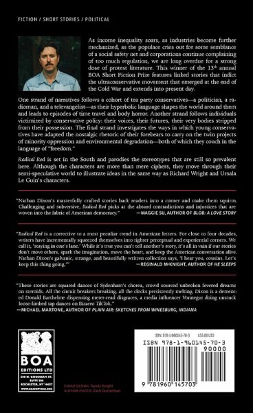 "As income inequality soars, as industries become further mechanized, as the populace cries out for some semblance of a social safety net and corporations complain of too much regulation, we are long overdue for a strong dose of protest literature. This winner of the 15th annual BOA Short Fiction Prize features linked stories that indict the ultraconservative movement that emerged at the end of the Cold War and extends into present day. One strand of narratives follows a cohort of tea party conservatives-a politician, a radioman, and a televangelist-as their hyperbolic language shapes the world around them and leads to episodes of time travel and body horror. The second strand follows individuals victimized by conservative policy: their voices, their futures, their very bodies stripped from their possession. The final strand investigates the ways in which young conservatives have adapted the nostalgic rhetoric of their forebears to carry on the twin projects of minority oppression and environmental degradation-both of which they couch in the language of "freedom." Radical Red is set in the South and parodies the stereotypes that are still so prevalent here. Although the characters are more than mere ciphers, they move through their semi-speculative world to illustrate ideas in the same way Richard Wright and Ursala Le Guin's characters do"--