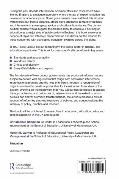 This book draws on the lessons from one of the most intensive periods of educational reform in any country during recent times. The post-1997 English experience, under a New Labour government, is used to illustrate the opportunities and challenges associated with attempting to develop a world class education system. Such reforms are fiercely contested - and often polarized - with proponents stressing the opportunities created, while others reveal the erosion of professional values. Contributions from UK and overseas researchers, including Andy Hargreaves and John Smyth, reflect on the implications for those concerned with developing education systems across the globe. ¿ Focusing on the challenges of radical reform in key areas - including variation in educational achievement; accountability and standards; linking school and community policies; workforce reform and choice and diversity - the book includes chapters on: ¿ Accountability for School Improvement Workforce-modelling and Distributed Leadership Multi-agency Work and Children's Services The Education and Poverty Link Personalised Learning Initial Teacher Education Drawing on the framework developed by New Labour to assess the approaches to and outcomes of interventions and the extent to which policies can deliver promised transformations - but going much deeper and wider than this - the authors present a critical account of reform by studying examples of policies, and conceptualizing the interplay between policy, practice and research. ¿ With contributions from leading international commentators, this book will be of interest to researchers in education, education policy and school leadership.