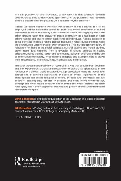 Radical Research explores the view that research is not a neutral tool to be employed without bias in the search for truth. Rather the radical roots of research are to be seen in the focus on freedom and emancipation from blind allegiance to tradition, 'common sense', religion, or powerful individuals and organisations. Radical Research introduces and draws upon leading contemporary debates and data gathered from a diversity of funded projects in; health, education, police training, youth and community, schools, business, and the use of information technology. This book presents a radical view of research in a way that enables both beginner and the experienced professional researcher to explore its approaches in the formation of their own views and practices. It progressively leads the reader from discussions of case studies to critical explorations of the philosophical and methodological concepts, theories and arguments that are central to contemporary debates. In essence, this book shows how to design, develop and write radical research under conditions where 'normal' research rules apply and it offers a ground-breaking and proven alternative to traditional research techniques.