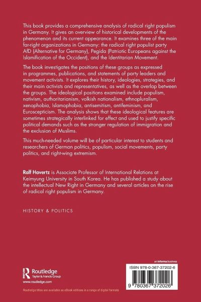 This book provides a comprehensive analysis of radical right populism in Germany. It gives an overview of historical developments of the phenomenon and its current appearance. It examines three of the main far-right organizations in Germany: the radical right populist party AfD (Alternative for Germany), Pegida (Patriotic Europeans against the Islamification of the Occident), and the Identitarian Movement.