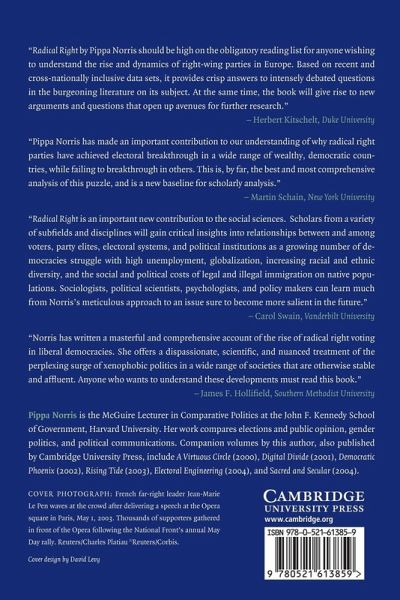 "Norris has written a masterful and comprehensive account of the rise of radical right voting in liberal democracies. She offers a dispassionate, scientific, and nuanced treatment of the perplexing surge of xenophobic politics in a wide range of societies that are otherwise stable and affluent. Anyone who wants to understand these developments must read this book." James Hollifield, Southern Methodist University