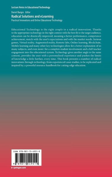 Educational Technology is the right couple to a radical innovation. Thanks to the appropriate technology in the right context with the best fit to the target audience, education can be drastically improved, meaning a better performance, competence achievement, match with the user's expectations and with the market needs. Serious games, Virtual reality, Augmented reality, Remote labs, Online learning, Blockchain, Mobile learning and many other key technologies allow for a better explanation of so many subjects, and even more: for a complete student involvement and a full teacher engagement into the educational system. Technology gives another angle to the same content, provides the user with a personalised experience and pushes the limits of knowledge a little further, every time. This book presents a number of radical innovations through technology, from experienced cases studies, to be replicated and inspired by; a powerful resource handbook for cutting-edge education.