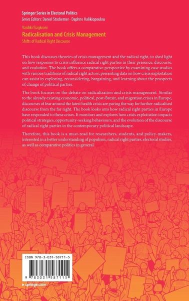 This book discusses theories of crisis management and the radical right, to shed light on how responses to crisis influence radical right parties in their presence, discourse, and evolution. The book offers a comparative perspective by examining case studies with various traditions of radical right actors, presenting data on how crisis exploitation can assist in exploring, reconsidering, bargaining, and learning about the prospects of change of political parties.