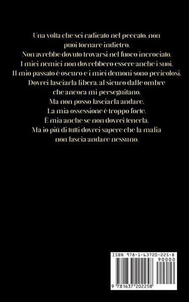 Una volta che sei radicato nel peccato, non puoi tornare indietro. Non avrebbe dovuto trovarsi nel fuoco incrociato. I miei nemici non dovrebbero essere anche i suoi. Il mio passato è oscuro e i miei demoni sono pericolosi. Dovrei lasciarla libera, al sicuro dalle ombre che ancora mi perseguitano. Ma non posso lasciarla andare. La mia ossessione è troppo forte. È mia anche se non dovrei tenerla. Ma io più di tutti dovrei sapere che la mafia non lascia andare nessuno.