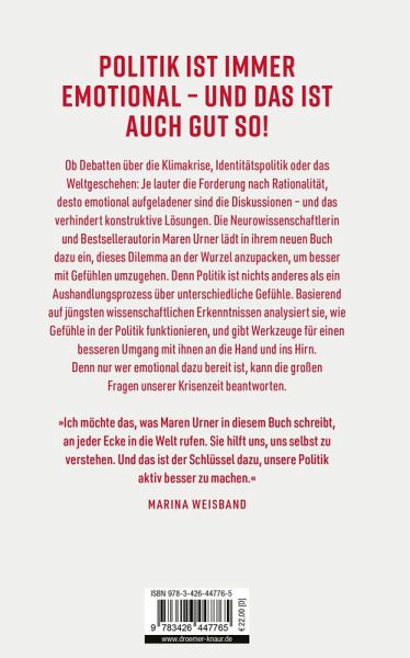 Egal ob bei Debatten über die Klimakrise, über Identitätspolitik oder das Weltgeschehen: Politik ist nichts anderes als ein Aushandlungsprozess über unterschiedliche Gefühle. In ihrem Debattenbuch fordert die Neurowissenschaftlerin und Bestsellerautorin Maren Urner, unser rationales Politikverständnis zu überdenken: Angesichts fortschreitender Krisen müssen wir endlich aufhören, Verstand und Emotionen voneinander zu trennen. Nur, wenn wir beides zusammendenken und danach handeln, können wir konstruktiv Politik gestalten.