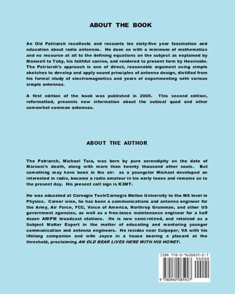 Theory and application of radio antennas without Maxwell's equations. Matter is explained in series of technical drawings, with mathematics explained in geometry. Explains antenna as sequence of segments, showing resonance, resistance and reactance. Explains some common antennas: dipoles, Yagi-Udas, Quads, Fractals, and dipole curtains.