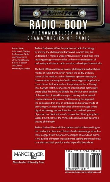This book presents a phenomenological model for understanding radio drama and uses it to analyse the practice of radio dramaturgy in the UK. It argues that the central role of the body in the act of listening has been neglected and suggests that a more resonant, embodied dramaturgy is needed to meet the demands of current listening cultures.