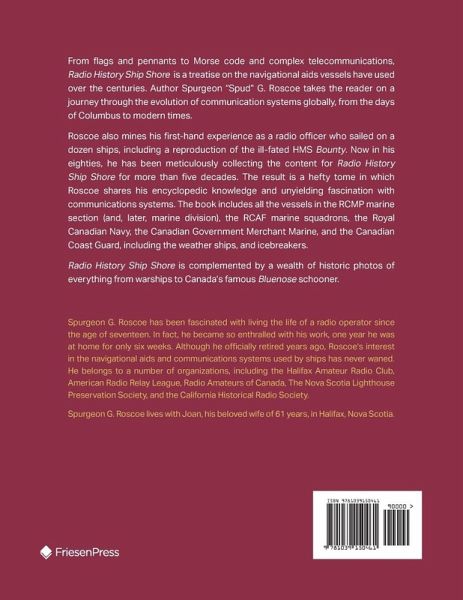 From flags and pennants to Morse code and complex telecommunications, Radio History Ship to Shore is a treatise on the navigational aids vessels have used over the centuries. Author Spurgeon "Spud" G. Roscoe takes the reader on a journey through the evolution of communication systems globally, from the days of Columbus to modern times. Roscoe also mines his first-hand experience as a radio officer who sailed on a dozen ships, including a reproduction of the ill-fated HMS Bounty. Now in his eighties, he has been meticulously collecting the content for Radio History Ship to Shore for more than five decades. The result is a hefty tome in which Roscoe shares his encyclopedic knowledge and unyielding fascination with communications systems. The book includes all the vessels in the RCMP marine section (and, later, marine division), the RCAF marine squadrons, the Royal Canadian Navy, the Canadian Government Merchant Marine, and the Canadian Coast Guard, including the weather ships, and icebreakers. Radio History Ship to Shore is complemented by a wealth of historic photos of everything from warships to Canada's famous Bluenose schooner.