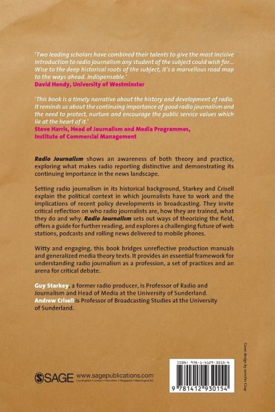 "This is not another turgid guide to digital editing, writing for radio and the structure of a newsroom team. It is an ambitious and accessible study that combines a succinct narrative history of radio journalism with an analysis of its power in the public sphere. It describes the development of British audio broadcasting before locating it in an international context and contemplating the contours of the convergent future. Such ambition is often the prelude to failure. Instead, Starkey and Crisell have written a precious introduction to the theory, practice and purposes of radio journalism that will be very useful to serious students of the subject... This is a very good book." - THE (Times Higher Education) Radio Journalism introduduces key themes in journalism studies to explore what makes radio reporting distinctive and lay out the claims for radio's critical importance in the news landscape. With their extensive experience in radio production and academica, authors Guy Starkey and Andrew Crisell take readers on a tour through the past, present and future of radio broadcasting, from the infancy of the BBC in the 1920s up to the prospect of rolling news delivered to mobile telephones. Grounding each chapter in a survey of scholarly writing on the radio, they explore the connections between politics, policy and practice, inviting critical reflection on who radio professionals are, what they do and why. Putting theory and practice into dialogue, this book is the perfect bridge between unreflective production manuals and generalised media theory texts. Witty and engaging, Radio Journalism provides an essential framework for understanding the continuing relevance of radio journalism as a profession, set of practices and arena for critical debate.