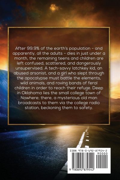 After 99.9% of the earth’s population - and apparently, all the adults - dies in just under a month, the remaining teens and children are left confused, scattered, and dangerously unsupervised. A tech-savvy latchkey kid, an abused arsonist, and a girl who slept through the apocalypse must battle the elements, wild animals, and roving bands of feral children in order to reach their refuge. Deep in Oklahoma lies the small college town of Nowhere; there, a mysterious old man broadcasts to them via the college radio station, beckoning them to safety.