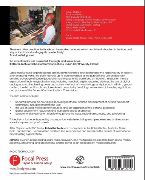 Radio Production is for professionals and students interested in understanding the radio industry in today's ever-changing world. This book features up-to-date coverage of the purpose and use of radio with detailed coverage of current production techniques in the studio and on location. In addition there is exploration of technological advances, including handheld digital recording devices, the use of digital, analogue and virtual mixing desks and current methods of music storage and playback. Within a global context, the sixth edition also explores American radio by providing an overview of the rules, regulations, and purpose of the Federal Communications Commission.