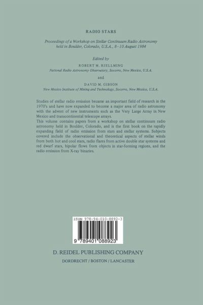 Proceedings of a Workshop on Stellar Continuum Radio Astronomy Held in Boulder, Colorado, U.S.A., 8-10 August 1984 Herausgegeben:Hjellming, R.; Gibson, David M.