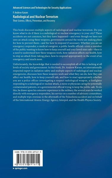 Unfortunately, the knowledge that is needed to accomplish all of this is lacking at all levels of society and government. In this book, Dr. Andrew Karam, an internationally respected expert in radiation safety andmultiple aspects of radiological and nuclear emergencies, discusses how these weapons work and what they can do, how they can affect our health, how to keep yourself safe, and how to react appropriately whether you are a police officer investigating a suspect radiological weapon, a firefighter responding to a radiological or nuclear attack, a nurse or physician caring for potentially contaminated patients, or a governmental official trying to keep the public safe. To do this, he draws upon his extensive experience in the military, the several years he worked directly with emergency responders, his service on a number of advisory committees, and multiple trips overseas in the aftermath of the Fukushima accident and on behalf of the International Atomic Energy Agency, Interpol, and the Health Physics Society.