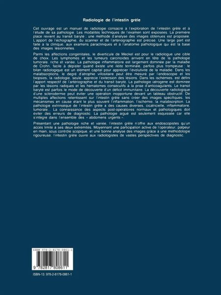 Table des matières.- Technique et sémiologie.- Rappel de quelques notions utiles.- Radiographie simple.- Transit baryté.- Examens barytes annexes.- Echographie.- Scanographie.- Artériographie.- En pratique.- Bibliographie.- Pathologie congénitale.- Rétrécissements et atrésies.- Dilatations segmentaires.- Myopathies et neuropathies viscérales.- Maladie de Hirschprung.- Brides, hernies, eventrations.- Malrotations de l'anse ombilicale primitive.- Diverticules.- Duplications.- Hétérotopies.- Anomalies vasculaires.- En pratique.- Bibliographie.- Pathologie tumorale.- Généralités.- Tumeurs bénignes.- Tumeurs malignes.- En pratique.- Bibliographie.- Pathologie inflammatoire.- Maladie de Crohn.- Tuberculose.- Yersiniose.- Infections intestinales.- Iléite par reflux.- Maladie de Whipple.- Ulcères non spécifiques.- Maladie de Zollinger-Ellison.- Jéjuno-iléite ulcérée chronique.- Maladie de Behcet.- Gastro-entérite à éosinophiles.- Bibliographie.- Maladie coeliaque et malabsorptions.- Maladie coeliaque.- Atrophies villositaires en dehors de la maladie coeliaque.- « Grêle fonctionnel ».- Bibliographie.- Pathologie parasitaire.- Giarda lamblia.- Isospora belli.- Cryptosporidium.- Ascaris lumbricoïdes.- Strongyloïdes stercoralis (anguillule).- Ankylostoma duodenale.- Anisakis.- Taenia saginata.- Candida albicans.- Histoplasma capsulatum.- Paracoccidioïdes brasiliensis.- Mucoraceae.- En pratique.- Bibliographie.- Pathologie vasculaire.- Ischémie intestinale non gangréneuse.- Thrombose veineuse.- Hématomes.- Bibliographie.- Pathologie iatrogène.- Lésions d'origine médicamenteuse.- Lésions radiques.- Syndrome de réaction du greffon contre l'hôte.- Bibliographie.- Pathologie immunitaire.- En pratique.- Bibliographie.- Collagénoses.-Sclérodermie.- Autres collagénoses.- Bibliographie.- Pathologies diverses.- Lymphangiectasies.- dème intestinal par hypoprotéinémie.- Amylose.- Pneumatose kystique.- Allergie alimentaire.- Purpura rhumatoïde.- Sarcoïdose.- Corps étrangers intra-luminaux.- Diverticules acquis.- Pseudo-obstructions.- Accélérations isolées du transit.- Maladie de Fabry.- Xanthomatose.- Mastocytose.- Abétalipoprotéinémie.- dème angioneurotique héréditaire.- Hémoglobinurie paroxystique.- Maladie de Degos.- Maladie de Wegener.- Bibliographie.- Pathologie extrinsèque.- Bibliographie.- Pathologie post-opératoire.- Intestin grêle opéré.- Intestin grêle après une intervention gastrique.- Bibliographie.- Pathologie aiguë.- Radiographies simples de l'abdomen.- Echographie abdominale.- Scanographie.- Artériographie coeliomésentérique.- Lavement iodé.- Transit baryté.- En pratique.- Bibliographie.- Conclusions pratiques.