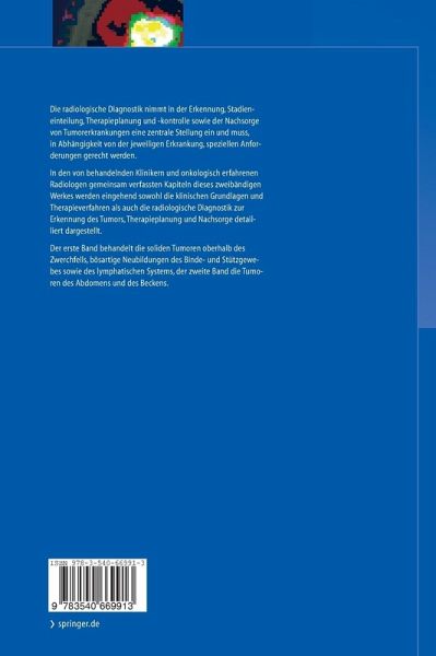 Die radiologische Diagnostik nimmt in der Erkennung, Stadieneinteilung, Therapieplanung und -kontrolle sowie der Nachsorge von Tumorerkrankungen eine zentrale Stellung ein und muss, in Abhängigkeit von der jeweiligen Erkrankung, speziellen Anforderungen gerecht werden. In den von behandelnden Klinikern und onkologisch erfahrenen Radiologen gemeinsam verfassten Kapiteln dieses zweibändigen Werkes werden eingehend sowohl die klinischen Grundlagen und Therapieverfahren als auch die radiologische Diagnostik zur Erkennung des Tumors, Therapieplanung und Nachsorge detailliert dargestellt. Der erste Band behandelt die soliden Tumoren oberhalb des Zwerchfells, bösartige Neubildungen des Binde- und Stützgewebes sowie des lymphatischen Systems, der zweite Band die Tumoren des Abdomens und des Beckens.
