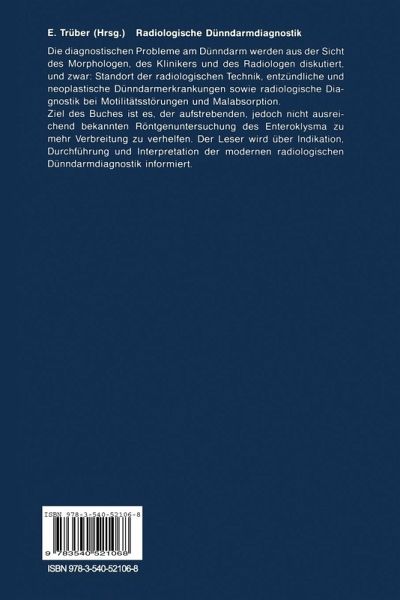 In diesem Band werden die diagnostischen Probleme am Dünndarm aus der Sicht des Morphologen, des Klinikers und des Radiologen diskutiert, und zwar: Standort der radiologischen Technik, entzündliche und neoplastische Dünndarmerkrankungen sowie radiologische Diagnostik bei Motilitätsstörungen und Malabsorption. Ziel des Buches ist es, der aufstrebenden, jedoch noch nicht ausreichend bekannten Röntgenuntersuchung des Enteroklysma zu mehr Verbreitung zu verhelfen. Der Leser wird über Indikation, Durchführung und Interpretation der modernen radiologischen Dünndarmdiagnostik informiert.