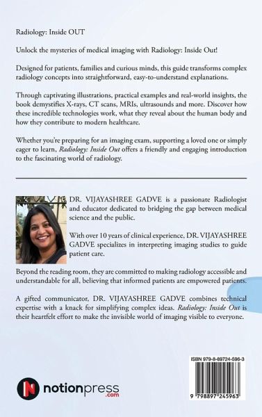 Radiology: Inside OUT Unlock the mysteries of medical imaging with Radiology: Inside Out! Designed for patients, families and curious minds, this guide transforms complex radiology concepts into straightforward, easy-to-understand explanations. Through captivating illustrations, practical examples and real-world insights, the book demystifies X-rays, CT scans, MRIs, ultrasounds and more. Discover how these incredible technologies work, what they reveal about the human body and how they contribute to modern healthcare. Whether you're preparing for an imaging exam, supporting a loved one or simply eager to learn, Radiology: Inside Out offers a friendly and engaging introduction to the fascinating world of radiology.