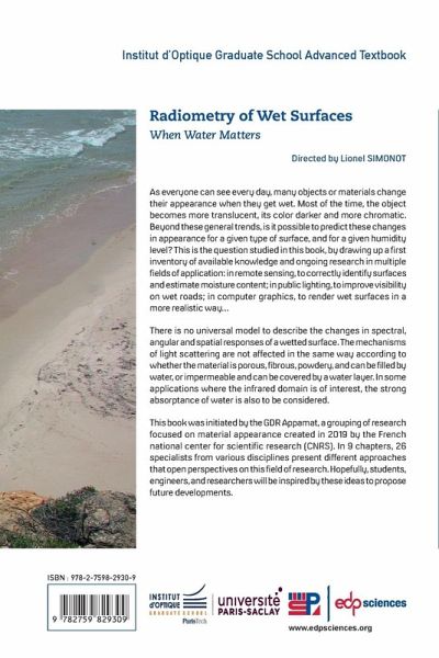As everyone can see every day, many objects or materials change their appearance when they get wet. Most of the time, the object becomes more translucent, its color darker and more chromatic. Beyond these general trends, is it possible to predict these changes in appearance for a given type of surface, and for a given humidity level? This is the question studied in this book, by drawing up a first inventory of available knowledge and ongoing research in multiple fields of application: in remote sensing, to correctly identify surfaces and estimate moisture content; in public lighting, to improve visibility on wet roads; in computer graphics, to render wet surfaces in a more realistic way... There is no universal model to describe the changes in spectral, angular and spatial responses of a wetted surface. The mechanisms of light scattering are not affected in the same way according to whether the material is porous, fibrous, powdery, and can be filled by water, or impermeable and can be covered by a water layer. In some applications where the infrared domain is of interest, the strong absorptance of water is also to be considered. This book was initiated by the GDR Appamat, a grouping of research focused on material appearance created in 2019 by the French national center for scientific research (CNRS). In 9 chapters, 26 specialists from various disciplines present different approaches that open perspectives on this field of research. Hopefully, students, engineers, and researchers will be inspired by these ideas to propose future developments.