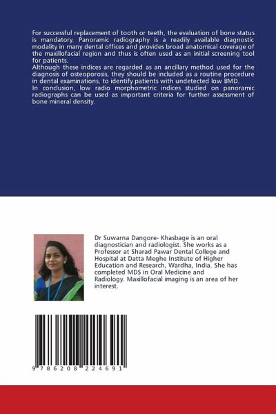 For successful replacement of tooth or teeth, the evaluation of bone status is mandatory. Panoramic radiography is a readily available diagnostic modality in many dental offices and provides broad anatomical coverage of the maxillofacial region and thus is often used as an initial screening tool for patients. Although these indices are regarded as an ancillary method used for the diagnosis of osteoporosis, they should be included as a routine procedure in dental examinations, to identify patients with undetected low BMD.In conclusion, low radio morphometric indices studied on panoramic radiographs can be used as important criteria for further assessment of bone mineral density.