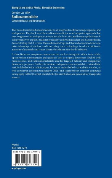 This book describes radionanomedicine as an integrated medicine using exogenous and endogenous This book describes radionanomedicine as an integrated approach that uses exogenous and endogenous nanomaterials for in vivo and human applications. It comprehensively explains radionanomedicine comprising nuclear and nanomedicine, demonstrating that it is more than radionanodrugs and that radionanomedicine also takes advantage of nuclear medicine using trace technology, in which miniscule amounts of materials and tracer kinetic elucidate in vivo biodistribution.