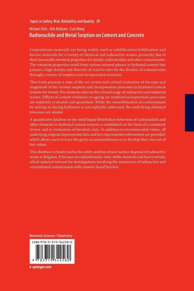 This book presents a state of the art review and critical evaluation of the type and magnitude of the various sorption and incorporation processes in hydrated cement systems for twenty-five elements relevant for a broad range of radioactive and industrial wastes. Effects of cement evolution or ageing on sorption/incorporation processes are explicitly evaluated and quantified. While the immobilisation of contaminants by mixing-in during hydration is not explicitly addressed, the underlying chemical processes are similar.