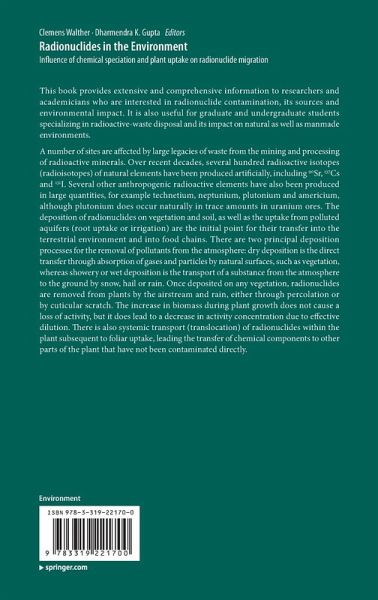 This book provides extensive and comprehensive information to researchers and academicians who are interested in radionuclide contamination, its sources and environmental impact. It is also useful for graduate and undergraduate students specializing in radioactive-waste disposal and its impact on natural as well as manmade environments.