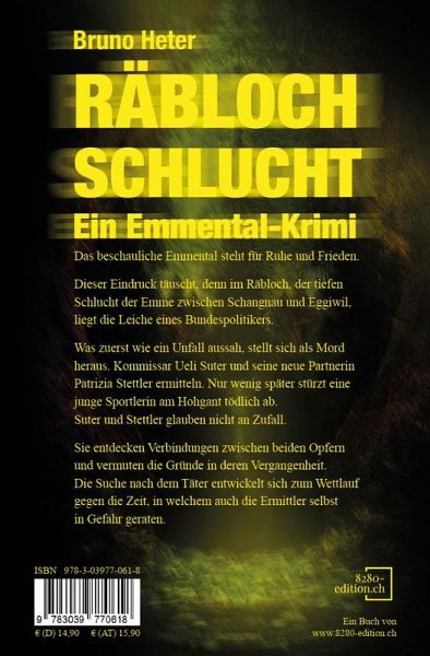 Das beschauliche Emmental steht für Ruhe und Frieden. Dieser Eindruck täuscht, denn im Räbloch, der tiefen Schlucht der Emme zwischen Schangnau und Eggiwil, liegt die Leiche eines Bundespolitikers. Was zuerst wie ein Unfall aussah, stellt sich als Mord heraus. Kommissar Ueli Suter und seine neue Partnerin Patrizia Stettler ermitteln. Nur wenig später stürzt eine junge Sportlerin am Hohgant tödlich ab. Suter und Stettler glauben nicht an Zufall. Sie entdecken Verbindungen zwischen beiden Opfern und vermuten die Gründe in deren Vergangenheit. Die Suche nach dem Täter entwickelt sich zum Wettlauf gegen die Zeit, in welchem auch die Ermittler selbst in Gefahr geraten.