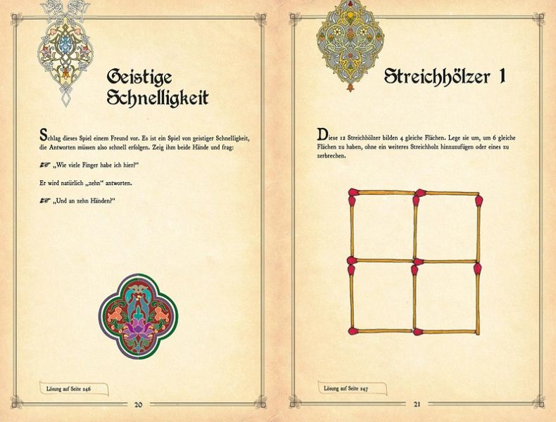 Wortspiele, Logikspiele, mathematische Probleme, Rätsel, Paradoxien...Lass Dich in diesem Buch durch mehr als 200 Rätsel des Orients begleiten, die Du alleine oder mit Freunden und Familie lösen kannst. Eine Herausforderung, bei der Du voller Spaß Deine Neuronen auf die Probe stellen kannst, während Du Hürdenmeisterst, die Dich wie die Märchen aus tausendundeiner Nacht verlocken werden. Es ist ganz einfach anzufangen: Du brauchst nur einen Stift, um Deinen Geist aufdie Probe zu stellen.