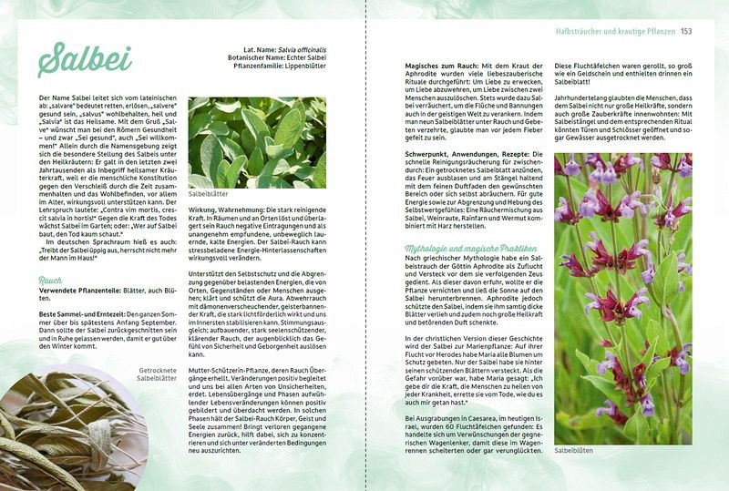 Räuchermischungen riechen angenehm und sind weit verbreitet. Oft kommen die Räucherstoffe jedoch aus Südamerika oder dem asiatischen Raum. Dabei gibt es bei uns mehr als genug geeignete Pflanzen, deren Rauch zu einem neuen Verständnis unserer äußeren und inneren Natur verhelfen kann.Im Buch stellt die Autorin 93 Pflanzen vor, die vor unserer Haustür wachsen. Ob Blätter, Blüten, Früchte und Stängel, ob Rinde, Holz, Harz oder Wurzeln - je nach Pflanze wird mit anderen Teilen geräuchert und je nach Pflanze sind die Wirkweisen unterschiedlich. Räuchern unterstützt die Gesundheit, beruhigt, schafft Ausgleich, baut Stress ab und vermittelt Geborgenheit. Einzigartig: 30 Wurzeln werden vorgestellt.Jede Räucherpflanze wird mit Farbfotos in mehreren Vegetationsstadien abgebildet, was das Erkennen erleichtert und beim Sammeln hilfreich ist. Die Autorin beleuchtet zudem die Verwendung der Pflanzen in der Volksheilkunde sowie deren Anwendung bei magischen Ritualen. Neben botanischen und geschichtlichen Aspekten liefert sie Vorschläge für bewährte Räuchermischungen.