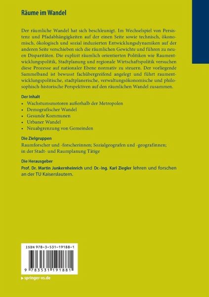 Der räumliche Wandel hat sich beschleunigt. Im Wechselspiel von Persistenz und Pfadabhängigkeiten auf der einen Seite sowie technisch, ökonomisch, ökologisch und sozial induzierten Entwicklungsdynamiken auf der anderen Seite verschieben sich die räumlichen Gewichte und führen zu neuen Disparitäten. Die explizit räumlich orientierten Politiken wie Raumentwicklungspolitik, Stadtplanung und regionale Wirtschaftspolitik versuchen diese Prozesse auf nationaler Ebene normativ zu steuern. Der vorliegende Sammelband ist bewusst fachübergreifend angelegt und führt raumentwicklungspolitische, stadtplanerische, verwaltungsökonomische und philosophisch-historische Perspektiven auf den räumlichen Wandel zusammen.
