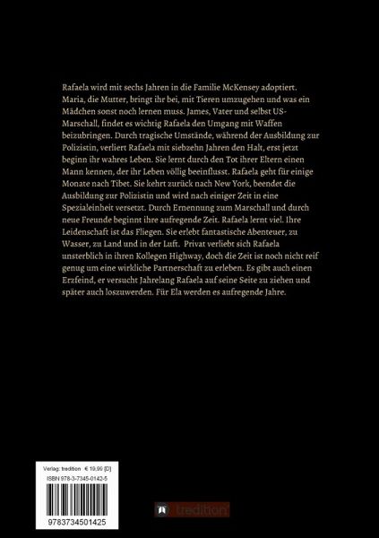 Rafaela wird mit sechs Jahren von der Familie McKensey adoptiert. Maria, die Mutter, bringt ihr bei, mit Tieren umzugehen, und was ein Mädchen sonst noch lernen muss. James, der Vater und selbst US-Marschall, findet es wichtig, Rafaela den Umgang mit Waffen beizubringen. Durch tragische Umstände während der Ausbildung zur Polizistin verliert Rafaela mit siebzehn Jahren den Halt, erst jetzt beginn ihr wahres Leben. Sie lernt durch den Tod ihrer Eltern einen Mann kennen, der ihr Leben völlig beeinflusst. Rafaela geht für einige Monate nach Tibet. Sie kehrt zurück nach New York, beendet die…mehr