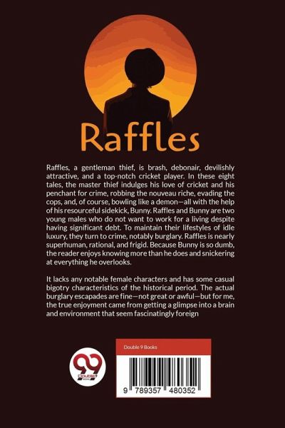 Raffles, a gentleman thief, is brash, debonair, devilishly attractive, and a top-notch cricket player. In these eight tales, the master thief indulges his love of cricket and his penchant for crime, robbing the nouveau riche, evading the cops, and, of course, bowling like a demon-all with the help of his resourceful sidekick, Bunny. Raffles and Bunny are two young males who do not want to work for a living despite having significant debt. To maintain their lifestyles of idle luxury, they turn to crime, notably burglary. Raffles is nearly superhuman, rational, and frigid. Because Bunny is so dumb, the reader enjoys knowing more than he does and snickering at everything he overlooks. It lacks any notable female characters and has some casual bigotry characteristics of the historical period. The actual burglary escapades are fine-not great or awful-but for me, the true enjoyment came from getting a glimpse into a brain and environment that seem fascinatingly foreign