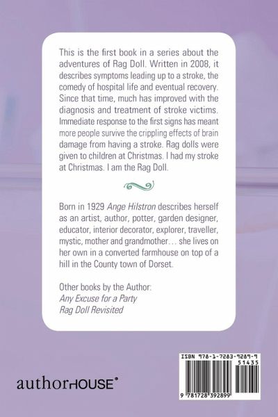 This is the first book in a series about the adventures of Rag Doll. Written in 2008, it describes symptoms leading up to a stroke, the comedy of hospital life and eventual recovery. Since that time, much has improved with the diagnosis and treatment of stroke victims. Immediate response to the first signs has meant more people survive the crippling effects of brain damage from having a stroke. Rag dolls were given to children at Christmas. I had my stroke at Christmas. I am the Rag Doll.