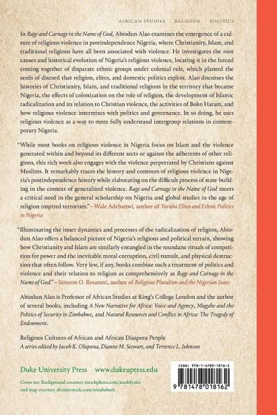 In Rage and Carnage in the Name of God, Abiodun Alao examines the emergence of a culture of religious violence in postindependence Nigeria, where Christianity, Islam, and traditional religions have all been associated with violence. He investigates the root causes and historical evolution of Nigeria's religious violence, locating it in the forced coming together of disparate ethnic groups under colonial rule, which planted the seeds of discord that religion, elites, and domestic politics exploit. Alao discusses the histories of Christianity, Islam, and traditional religions in the territory that became Nigeria, the effects of colonization on the role of religion, the development of Islamic radicalization and its relation to Christian violence, the activities of Boko Haram, and how religious violence intermixes with politics and governance. In so doing, he uses religious violence as a way to more fully understand intergroup relations in contemporary Nigeria.