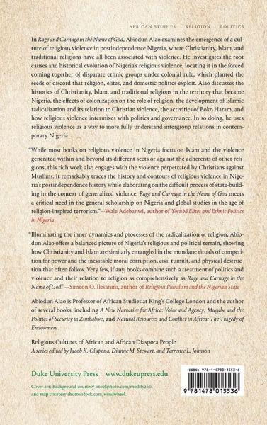 In Rage and Carnage in the Name of God, Abiodun Alao examines the emergence of a culture of religious violence in postindependence Nigeria, where Christianity, Islam, and traditional religions have all been associated with violence. He investigates the root causes and historical evolution of Nigeria's religious violence, locating it in the forced coming together of disparate ethnic groups under colonial rule, which planted the seeds of discord that religion, elites, and domestic politics exploit. Alao discusses the histories of Christianity, Islam, and traditional religions in the territory that became Nigeria, the effects of colonization on the role of religion, the development of Islamic radicalization and its relation to Christian violence, the activities of Boko Haram, and how religious violence intermixes with politics and governance. In so doing, he uses religious violence as a way to more fully understand intergroup relations in contemporary Nigeria.