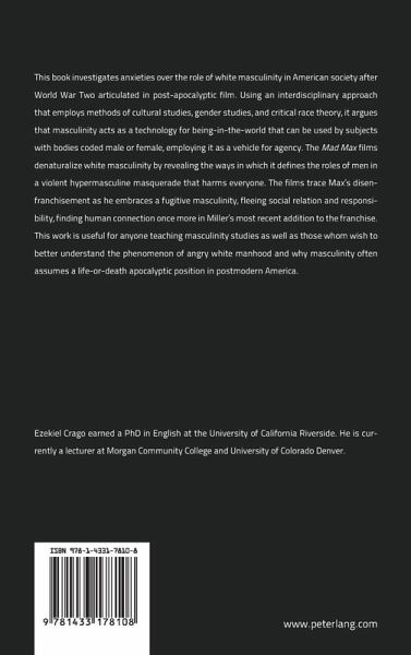 This book investigates anxieties over the role of white masculinity in American society after World War Two articulated in post-apocalyptic film. Using an interdisciplinary approach that employs methods of cultural studies, gender studies, and critical race theory, it argues that masculinity acts as a technology for being-in-the-world that can be used by subjects with bodies coded male or female, employing it as a vehicle for agency. The Mad Max films denaturalize white masculinity by revealing the ways in which it defines the roles of men in a violent hypermasculine masquerade that harms everyone. The films trace Max's disenfranchisement as he embraces a fugitive masculinity, fleeing social relation and responsibility, finding human connection once more in Miller's most recent addition to the franchise. This work is useful for anyone teaching masculinity studies as well as those whom wish to better understand the phenomenon of angry white manhood and why masculinity often assumes a life-or-death apocalyptic position in postmodern America.