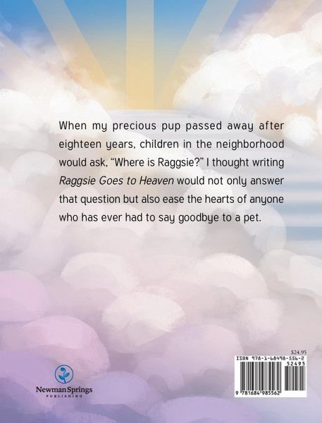 When my previous pup passed away after eighteen years, children in the neighborhood would ask, "Where is Raggsie?" I thought writing Raggsie Goes to Heaven would not only answer that question but also ease the hearts of anyone who has ever had to say goodbye to a pet.