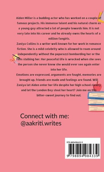 Zaniya Collins is a renowned novelist who is loved by fellow readers. Her peaceful life is wrecked when she runs into Aiden Miller, an actor and her long-lost high school rival. With uninvited fame and the chapters of her past, she tries her best to hold herself together. Emotions are expressed, arguments are fought, memories are brought up, friends are made and feelings are found. Will they both let each other enter their hearts?