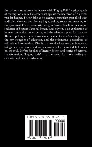 He ran from pain. He found the rails. But the journey to freedom cuts deeper than the tracks ever could. After one violent night shatters the last remnants of his home life, seventeen-year-old Jake Walker flees his abusive father and the ruins of a haunted past. With nothing but a backpack, a sketchbook, and a pocketful of cash, he hops a freight train out of New Jersey and into the unknown. What begins as an escape turns into a cross-country odyssey through underground diners, desert raves, makeshift camps, and drug-fueled nightmares. Alongside wanderers like Tom, the seasoned traveler, and Lily, the free-spirited artist, Jake tastes fleeting joy-and devastating loss. As the rails carry him from one broken place to another, Jake must confront the grief he buried, the addictions threatening to consume him, and the question he can no longer avoid: Is he running toward freedom-or away from himself? Raging Rails is a raw and lyrical coming-of-age novel that explores trauma, addiction, and the thin line between escape and self-destruction. Perfect for fans of gritty, soul-searching journeys and emotionally charged literary fiction.