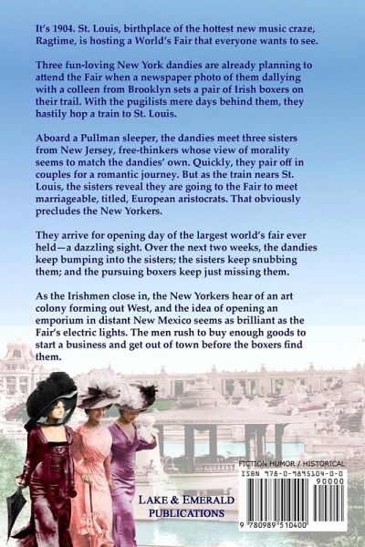 It's 1904. St. Louis, birthplace of the hottest new music craze, Ragtime, is hosting a World's Fair that everyone wants to see. Three fun-loving New York dandies are already planning to attend the Fair when a newspaper photo of them dallying with a colleen from Brooklyn sets a pair of Irish boxers on their trail. With the pugilists mere days behind them, they hastily hop a train to St. Louis. Aboard a Pullman sleeper, the dandies meet three sisters from New Jersey, free-thinkers whose view of morality seems to match the dandies' own. Quickly, they pair off in couples for a romantic journey. But as the train nears St. Louis, the sisters reveal they are going to the Fair to meet marriageable, titled, European aristocrats. That obviously precludes the New Yorkers. They arrive for opening day of the largest world's fair ever held-a dazzling sight. Over the next two weeks, the dandies keep bumping into the sisters; the sisters keep snubbing them; and the pursuing boxers keep just missing them. As the Irishmen close in, the New Yorkers hear of an art colony forming out West, and the idea of opening an emporium in distant New Mexico seems as brilliant as the Fair's electric lights. The men rush to buy enough goods to start a business and get out of town before the boxers find them.