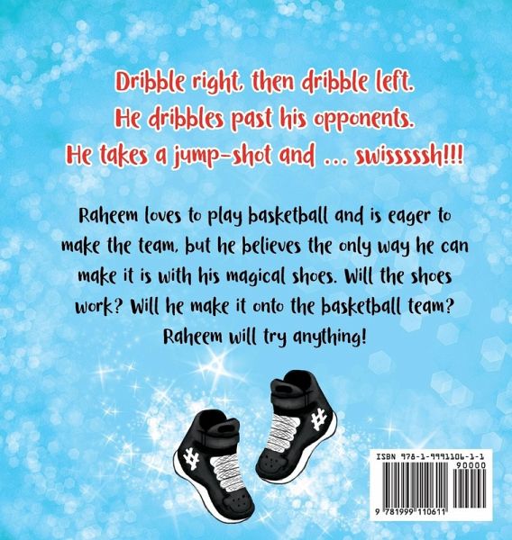 Dribble right, then dribble left. He dribbles past his opponents. He takes a jump-shot and ... swisssssh! Raheem loves to play basketball and is eager to make the team, but he believes the only way he can make it is with his magical shoes. Will the shoes work? Raheem will try anything! "Raheem and his Magic shoes" is the inspiring story of Raheem and his quest to make the basketball team. This fully illustrated book tells the story of a young boy who believes he isn't good enough without his special kick's to make the team.